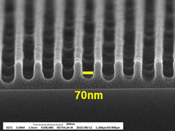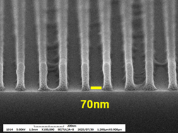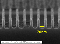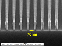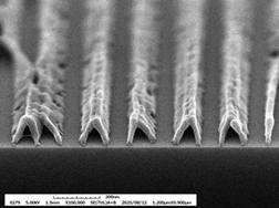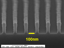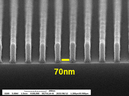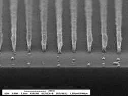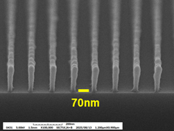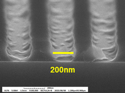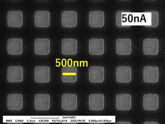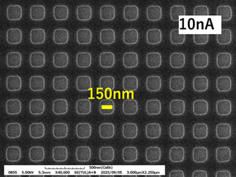 | 仕様 | 本装置は、レジストを塗布した基板に細く絞った電子ビームを照射し、微細なレジストパターンを形成する装置です。加速電圧が 50 kVであり、最小描画線幅は20nmです。大電流かつ狭ピッチでの描画が可能となり、より高速で高品質な描画を実現します。 ・型式: ELS-BOEDEN50 ・ 試料ホルダーの種類 ・8 インチ ・マルチウェハ(ピンの位置設定で変更) ・小片 ・10mmΦ 最大試料サイズは、8インチ。 ・電子銃: ZrO/W熱電界放射型 ・加速電圧: 50kV ・最小ビーム径: 2.8 nm ・最大スキャンクロック: 100 MHz ・ショットピッチ: 1 nm ・ビーム電流強度: 1nA~800nA ・フィールドサイズ: 1000μm□、100μm□ 、250μm□、500μm□、1500μm□ ・つなぎ精度: □1000µm フィールド …±30nm 以内 ・重ねあわせ精度:±30nm ・描画可能エリア: 210 mm x 210 mm ・ソフトウェア elms ビーム調整機能、描画スケジュール機能、パターンデータ変換機能 オーバーヘッドタイムを省いた「高速モード」あり |